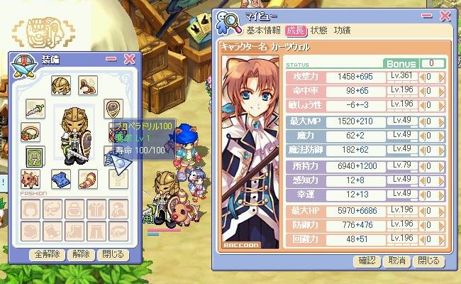 非課金Gvでの狸のステと装備も晒そうかと思いますっ。