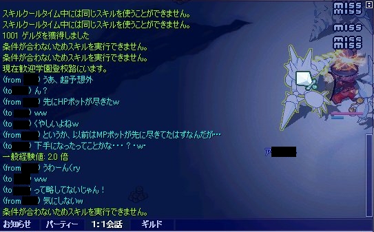 久しぶりに狩りすべくPTにまぜてもらって狩りしてたところ。